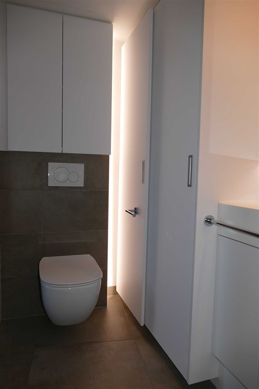 Jong, lichtrijk duplexappartement. Luxueus afgewerkt, hoog wooncomfort. Veel aandacht voor bergruimte met op maat gemaakte kasten.Grote en heldere woonkamer van voor- tot achtergevel, voorzien van veel lichtpunten en spots. Open, moderne leefkeuken met toestellen. 2 slaapkamers met eigen badkamer. Apart toilet met handenwasser. Technische ruimte.