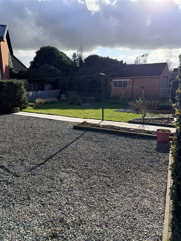 De woning heeft ook een ruime garage, en naast de woning is er nog een lange oprit waar je nog extra wagens kan parkeren.